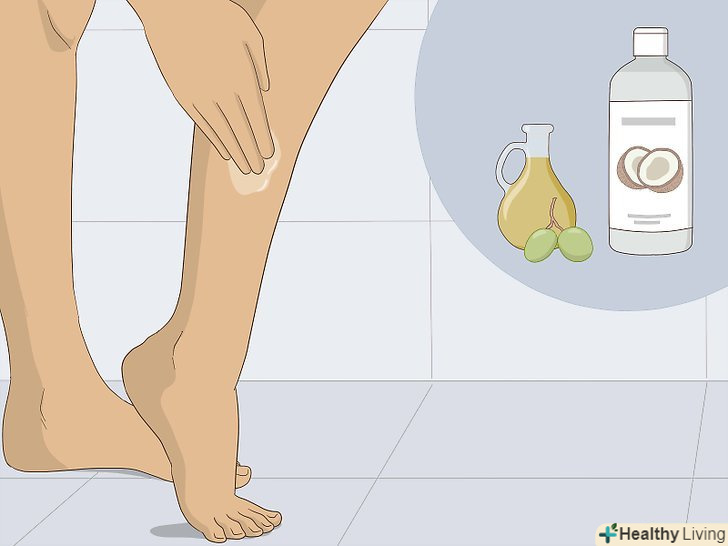 Нанесіть на ноги масло. якщо ви хочете, щоб ваші ноги блищали, нанесіть на них невелику кількість масла. Існує безліч масел, включаючи кокосове масло, масло жожоба і оливкове масло, які можуть перетворити будь-яку пару ніг в сяючий захват. Навіть невелика кількість масла здатне творити чудеса. Налийте трохи (з рублеву монету) кошти на долоні, розітріть і нанесіть масло на ноги. Блиск від масла протримається кілька годин, при цьому масло буде зволожувати шкіру. [3]- Будьте обережні при нанесенні масла на шкіру, так як воно може легко забруднити одяг. Перш ніж одягатися, переконайтеся, що ретельно втерли масло в шкіру і не зіпсуєте одяг.