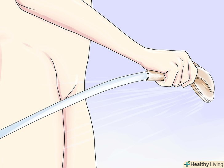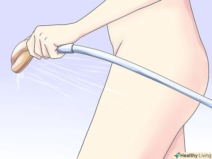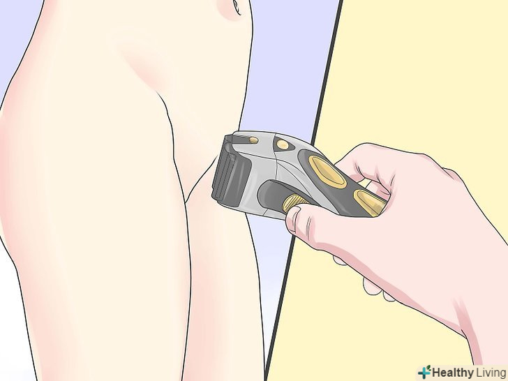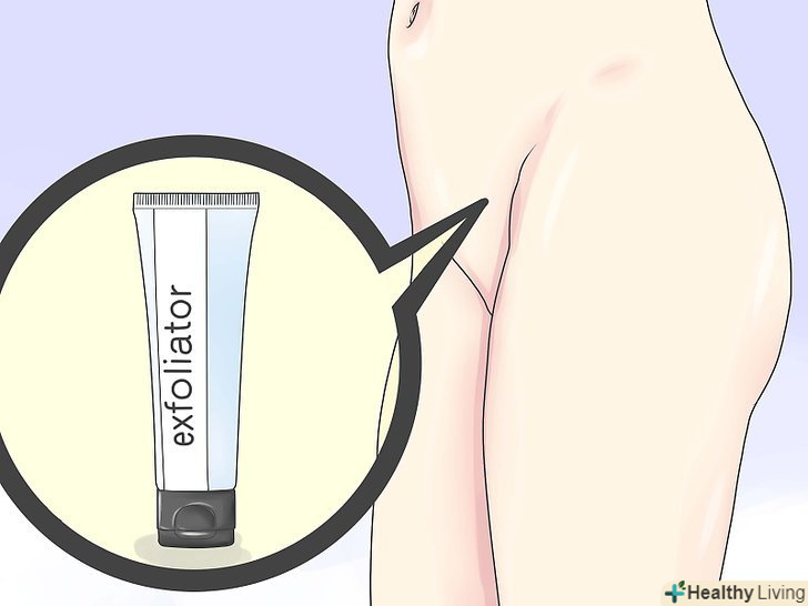 Помийтеся. Як і при будь-якому видаленні волосся, ви повинні зробити так, щоб ніщо не могло перешкодити процедурі або уповільнити її. Крім того, непогано дотримати гігієну, особливо якщо справа стосується області статевих органів. Помийтеся, прибравши випали волоски, і позбудьтеся від мертвих клітин шкіри. Використовуйте відлущуючий засіб, щоб розгладити шкіру і трохи розкрити пори для полегшення процедури видалення волосся.