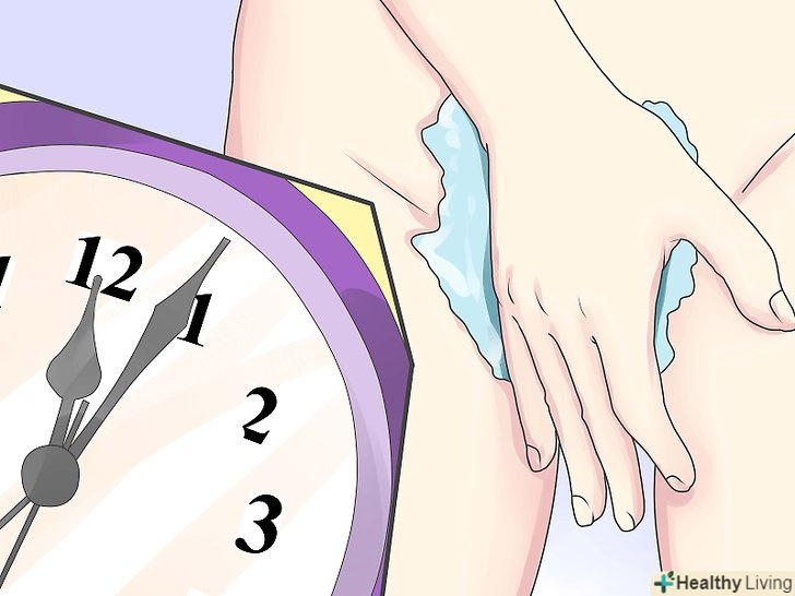 Дайте засобу подіяти. у вас повинен бути таймер або годинник під рукою, щоб стежити за тим, як довго залишається на шкірі засіб для депіляції. Зазвичай інструкції радять почекати 3-5 хвилин перед змиванням кошти.- Якщо засіб для депіляції викличе відчуття печіння, негайно змийте його теплою водою.