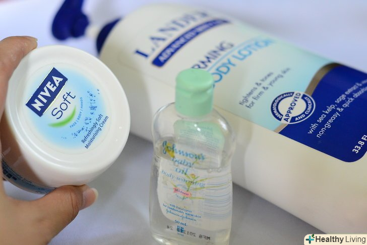 Вилийте невелику кількість дитячого масла на кожну ногу. втирайте його. Після цього нанесіть будь-який лосьйон (Тепер ви можете лягати спати).