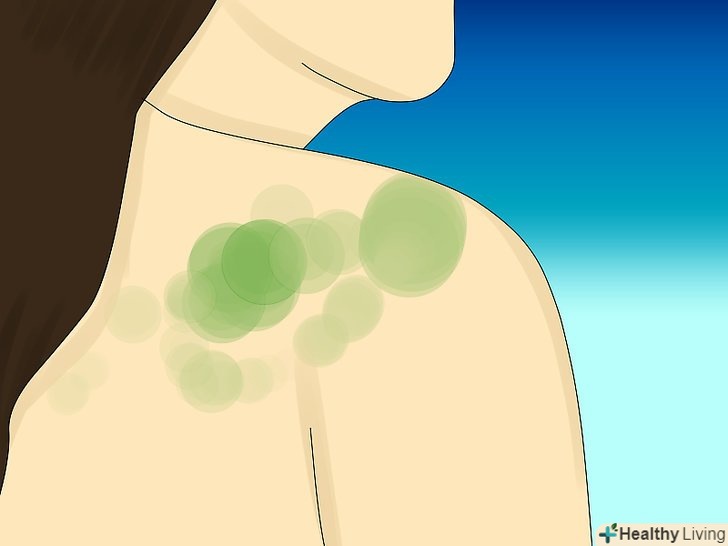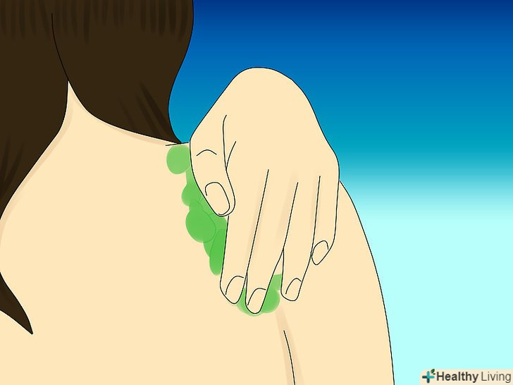 Наносите засіб за допомогою пальців. багато людей думають, що продукт варто наносити за допомогою отшелушивающего аплікатора, проте так ви ризикуєте викликати ще більше роздратування в проблемній зоні. Краще користуйтеся пальцями. Ви також можете використовувати губку для ванни з м'якою поверхнею, щоб очистити важкодоступні місця на спині. [9]