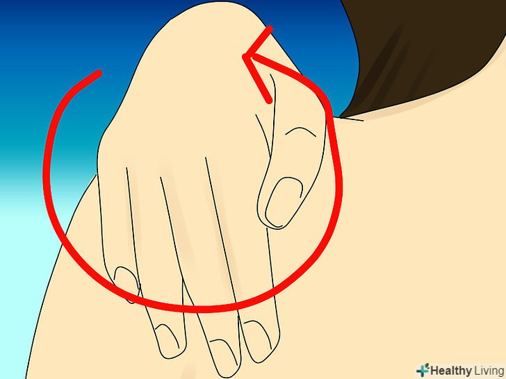 Здійснюйте м'які, кругові рухи. ви не повинні терти або шкребти шкіру. Краще робіть м'які, кругові рухи, щоб нанести засіб на спину. Занадто сильне розтирання шкіри призведе лише до того, що акне буде гоїтися довше, а також викличе появу шрамів. Крім того, це дратує шкіру, а вивільнені бактерії переміщаються з прища і вражають інші області. Пошкоджена шкіра також більш схильна до появи акне. [10]