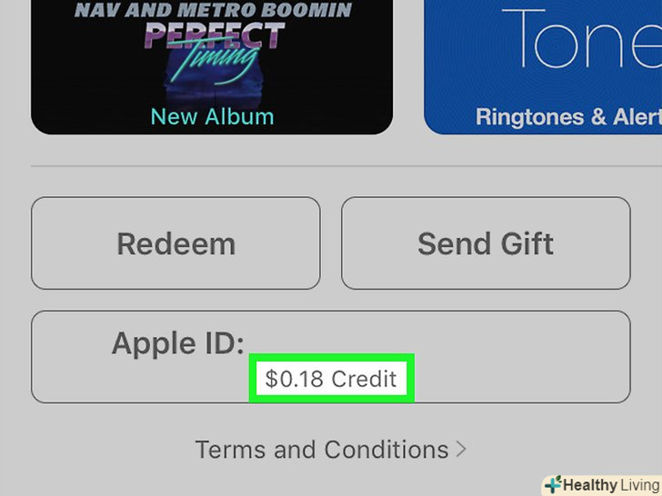 З'ясуйте баланс облікового запису.для цього на iPhone, iPad і iPod прокрутіть сторінку вниз. На комп'ютері баланс відображається в правому верхньому куті.[4]- Якщо у вас не виходить знайти ідентифікатор користувача на мобільному пристрої, натисніть «Добірка» внизу екрану, а потім прокрутіть сторінку вниз.
