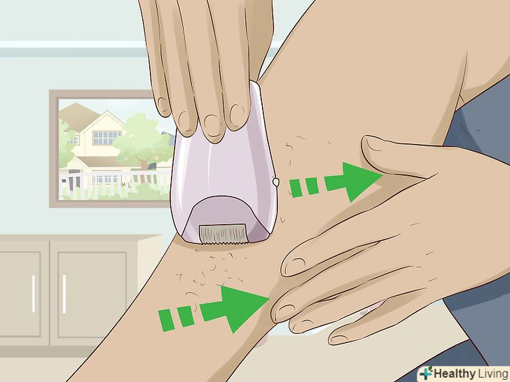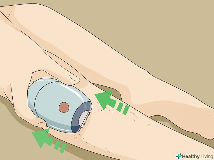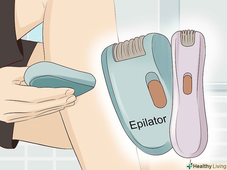 Розгляньте застосування епілятора. епілятор має безліч пінцетів, які висмикують волоски, що допомагає позбутися від них приблизно на два тижні. Видалення волосся за допомогою епілятора займає більше часу і викликає більше хворобливих відчуттів, ніж гоління, але результат триває набагато довше, так як при цьому повністю видаляється волосяний фолікул. Волосинки не зрізаються, а потрапляють в спеціальні пази приладу, які захоплюють їх і витягають з коренем.- Застосування епілятора може провокувати появу врослих волосків, так що обов'язково використовуйте крем Depil або Vanish PFB після процедури.