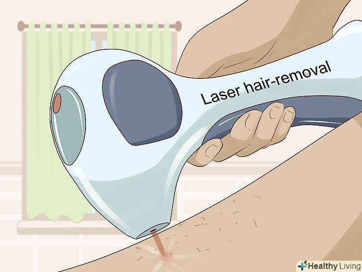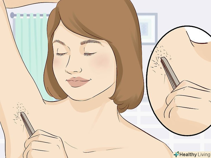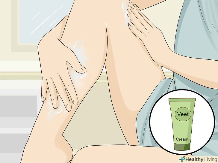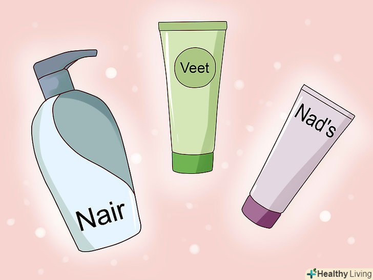 Купуйте Nair, Veet, Nad's або будь-який аналогічний крем. як і після бритви, ефект триває короткий проміжок часу, але відпадає необхідність в бритві або кремі для гоління. Крем для депіляції наноситься на шкіру на певну кількість часу, за яке він розчиняє волоски, після чого його необхідно зішкребти. Такі креми видаляють волосся хімічним способом і безболісно, а результат триває до двох тижнів. Крем для депіляції можна купити в більшості аптек.- Процедура проводиться в комфортних домашніх умовах, проте вимагає більше часу, ніж використання бритви. Спробуйте цей спосіб, якщо у ви не дуже добре вмієте поводитися з бритвою і часто ріжете шкіру під час гоління.
