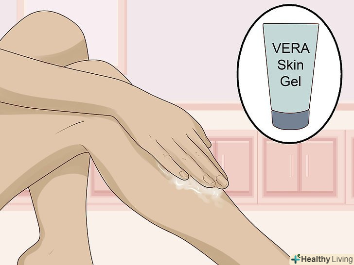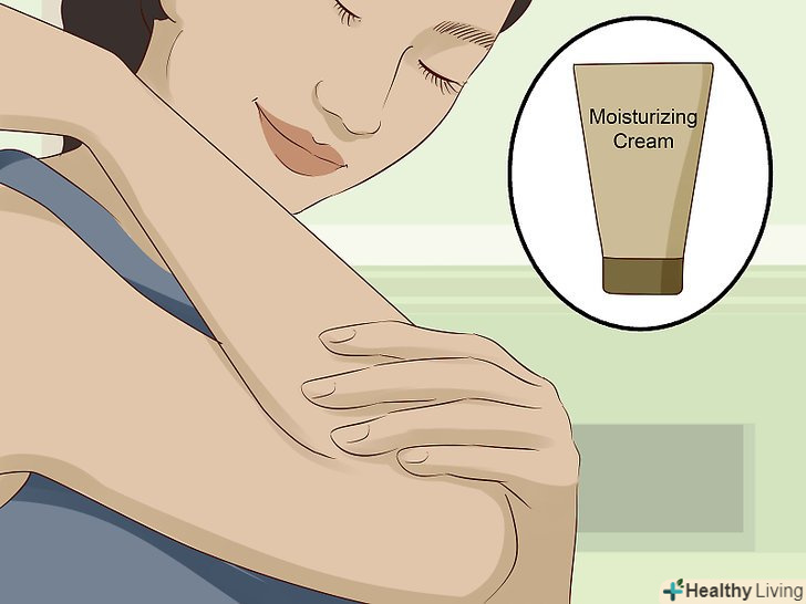 Зволожите шкіру. необхідно використовувати зволожуючий засіб, який подбає про шкіру. В процесі гоління видаляється верхній шар епідермісу, що робить шкіру дуже чутливою до пошкоджень, але одночасно і більш сприйнятливою до вологи, тому варто скористатися моментом. Використовуйте зволожуючі засоби з вітаміном Е і маслом Ши, які заспокоять шкіру і збережуть її молодість.- Якщо вам потрібен додатковий захист від бритви, використовуйте спеціальний крем або масло (яке зазвичай містить знеболюючий засіб), щоб запобігти роздратуванню.