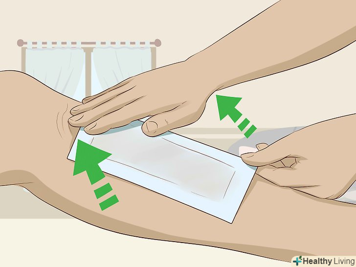 Натягніть шкіру з одного боку. шкіра повинна бути натягнутою, щоб віск не потрапляв в складки або зморшки, що зробить процедуру болючою. Проведіть по восковій смужці кілька разів в напрямку росту волосся, щоб якомога щільніше приклеїти її до шкіри.