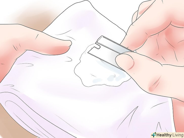 Обережно зніміть надлишок грунтовки. користуючись одностороннім бритвеним лезом, обережно зішкребіть ґрунтовку з поверхні тканини.- Тримайте лезо під кутом таким чином, щоб воно ледь торкалося тканини під невеликим кутом в сторону поверхні.