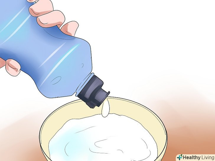 Приготуйте розчин миючого засобу. приготуйте чистячий розчин з однієї частини рідини для миття посуду і однієї частини холодної води.- Точна кількість розчину, яка буде потрібна для роботи, залежить від розміру плями, але ви повинні приготувати достатньо, щоб добре просочити забруднену область.