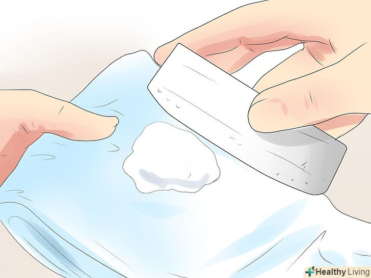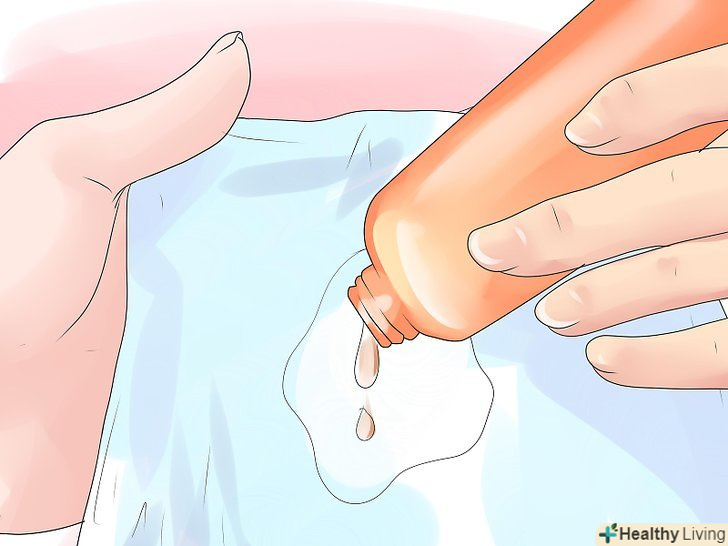 Змочіть пляму розчином миючого засобу. змочіть в розчині губку, потім промакивающими рухами змочіть пляму.- Не тріть пляму, в цьому випадку грунтовка тільки глибше проникне в волокна тканини.