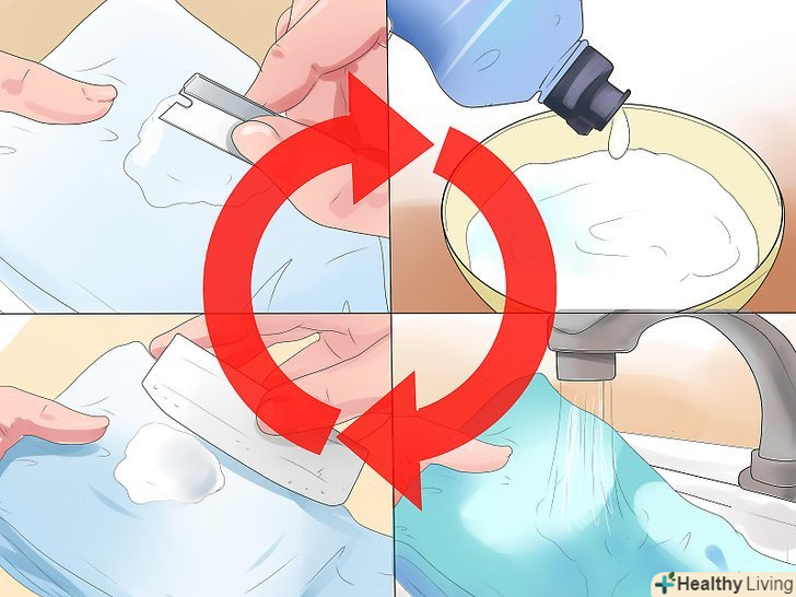 Добре промийте. після обробки плями протягом декількох хвилин, протріть матеріал під прохолодною водою.- Працюйте з вивороту тканини, якщо можливо, і полощіть тканину до тих пір, поки стікає вода не стане чистою.