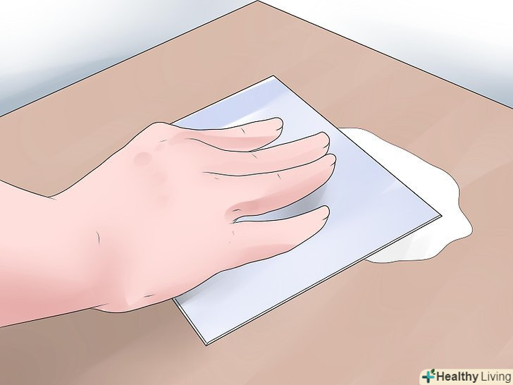 - Почніть працювати наждачкою із середнім зерном і шліфуйте в одному напрямку. Не турбуйтеся, якщо спочатку не побачите прогресу. Вам доведеться шліфувати мінімум 5 хвилин, весь час прикладаючи зусилля, поки проявитися видимий результат.