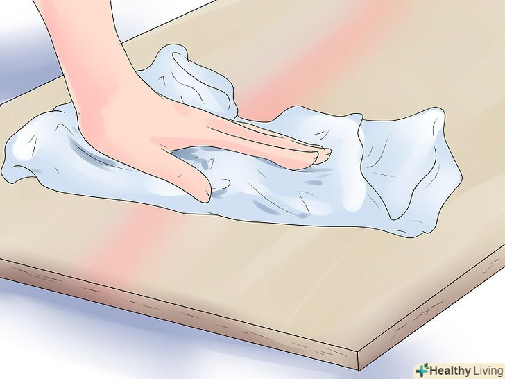 Витріть пил вологою ганчіркою. використовуйте чисту вологу ганчірку, щоб змести пил і сміття з робочої поверхні, коли ви закінчите шкребти і шліфувати.- Просушіть поверхню другою ганчіркою відразу після того, як протрете її вологою тканиною.
