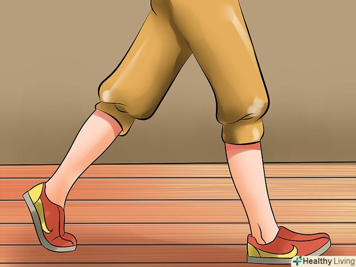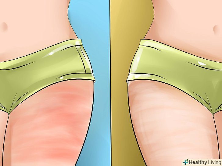 Тримайте ноги в тонусі. працюйте над внутрішньою і зовнішньою частиною стегон — ходіть, займайтеся йогою, виконуйте вправи у хореографічного верстата, бігайте, робіть випади і присідайте. Зверніться за допомогою до професійного тренера, щоб розробити графік вправ для ніг, які зміцнять м'язи під розтяжками. Якщо ви набрали вагу, заняття аеробікою допоможуть скинути кілька кілограмів і зняти тиск на шкіру.- І хоча пружні м'язи не позбавлять вас від розтяжок, вони зроблять менш помітним целюліт, який часто з'являється в тих же областях.