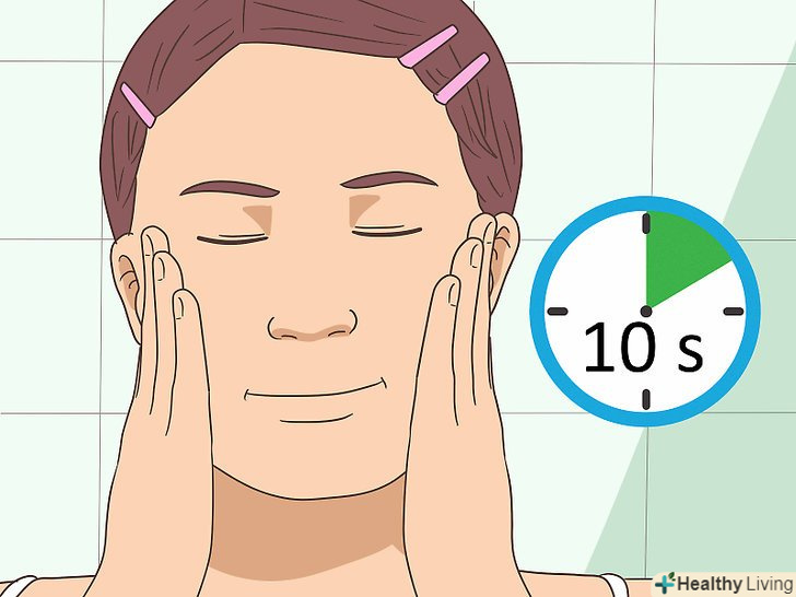 Нанесіть молочко на обличчя. накрийте щоки руками, злегка натискаючи. Так молочко розподілиться по шкірі. Тримайте руки, не прибираючи, близько 10 секунд. [4]