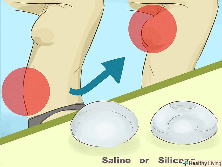 Дізнайтеся у лікаря про можливі варіанти проведення операції. є кілька методів проведення хірургічного втручання з метою збільшення грудей. Поговоріть з лікарем і разом вирішите, який з них вам найбільше підходить. [25] Отже, ось кілька варіантів:- Силіконові імплантати, які поміщаються під тканини молочної залози і заміщають нормальну жирову тканину, роблячи груди більше. Метод силіконових імплантатів можна використовувати будь-якій жінці старше 22 років. [26]
