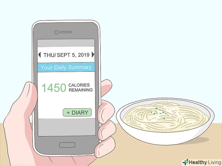 Створіть собі дефіцит калорій. калорії — це паливо, яким наше тіло користується для спалювання жиру (який, до речі, в основному і відкладається на вашому бюсті), таким чином ваше завдання — давати своєму організму менше калорій, ніж йому необхідно. Це не означає, що ви повинні голодувати. Вам потрібно просто збалансувати рівень своєї щоденної активності і кількість споживаних калорій. Невелике зменшення обсягу споживаної їжі і невелике збільшення рівня щоденної активності допоможе вам схуднути.- Використовуйте онлайн-калькулятор калорій, щоб розрахувати, як вам потрібно змінити свою дієту.
