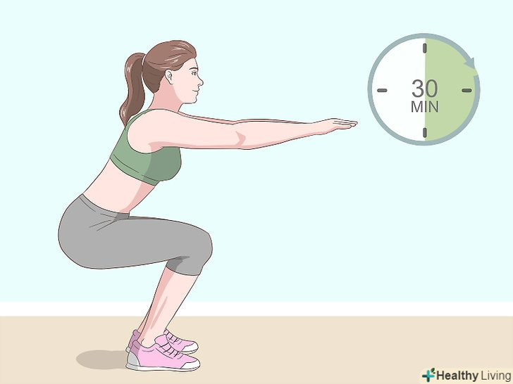 Робіть вправи з розумом. дуже легко застрягти і втратити ентузіазм на типових вправах типу віджимань або підтягувань, але ж існує маса інших набагато більш цікавих вправ, який ще легше підлаштувати за свій розпорядок дня. Хорошим прикладом послужать присідання, упор лежачи, вистрибування з положення упору присівши. Всі ці вправи можна легко освоїти по відповідним статтям wikiHow . Виберіть одне або кілька відповідних Вам вправ і виконуйте їх мінімум по 15 хвилин за підхід протягом мінімум 30 хвилин в день.- Присідання і упори лежачи — це статичні вправи. Якщо ви будете робити тільки їх, то вам варто наслідувати нашу пораду і більше ходити пішки. Постарайтеся ходити протягом 30 хвилин кожен день, і чим більше сходів і пагорбів буде у вас на шляху, тим краще.