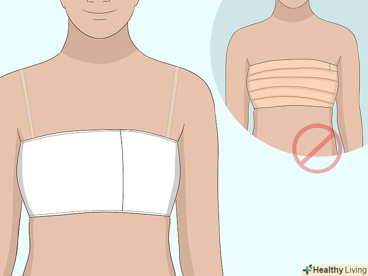 Будьте обережні у виборі матеріалу, яким збираєтеся перетягувати груди. в інтернеті можна знайти безліч зручних і безпечних спецзасобів для перетягування грудей. Переконайтеся, що ваш засіб повністю безпечно і не викличе ніяких фізичних проблем. Перетягуйте груди тільки спеціальними бандажами не використовуйте для цього еластичні бинти або щось подібне. Еластичні бинти можуть виявитися надто тугими і викликати проблеми з диханням, синці, тріщини в ребрах або яким-небудь ще чином пошкодити ваші груди, якщо ви будете часто і довго ними користуватися. [4]