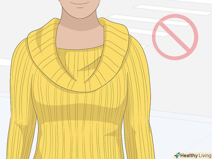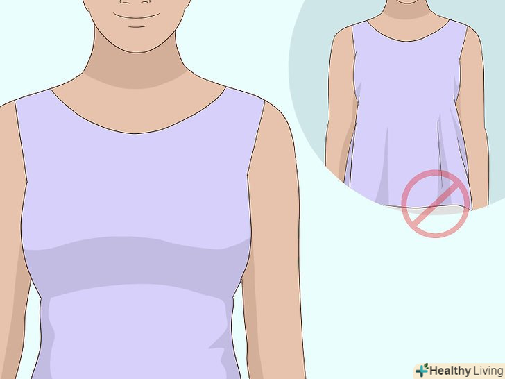 Уникайте одягу, яка візуально збільшує груди. уникайте светрів і блузок з коміром типу хомут, водолазок з горлом, блузок з рюшами спереду і всього іншого, що додає обсягу верхньої частини вашого тіла. Такі речі тільки змусять вашу груди виглядати ще більше. Віддайте переваги одязі, що не робить акценту на грудях.