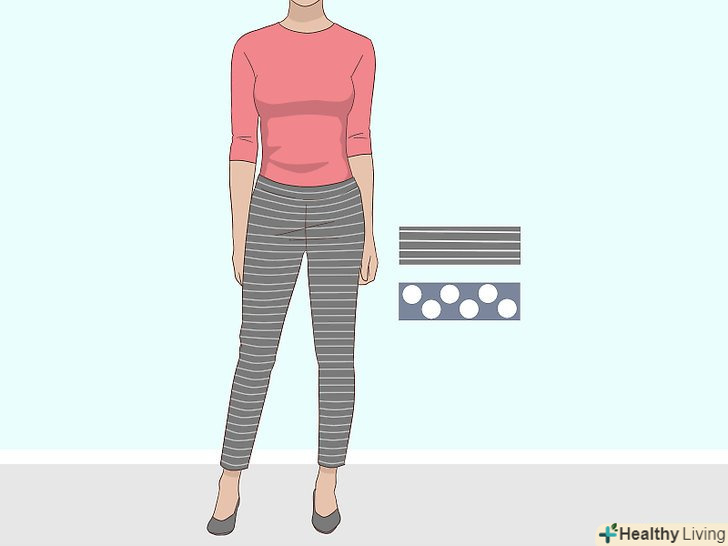 Зробіть акцент на стегнах. Якщо ви хочете, щоб ваша фігура виглядала більш стрункою і пропорційною, то вам потрібно відвести увагу дивиться від ваших грудей і залучити його до ваших стегон. Вибирайте штани з горизонтальними смужками, щоб оптично надати більше обсягу своїм стегнах, в той же час вибирайте прості топи, які ніяк не обтяжують вашу груди. Так ваші груди буде здаватися менше.