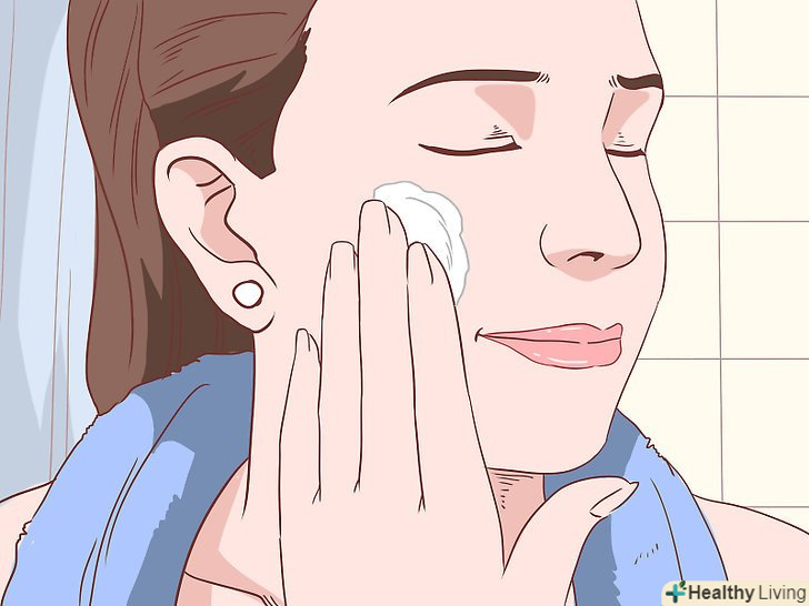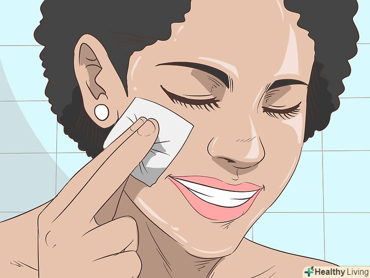 Витріть зайву вологу ватним кулькою. коли ви будете готові нанести косметику, витріть залишився на шкірі зволожуючий засіб. Ватний кулька досить м'який, щоб не пошкодити струп. Промокніть рану, щоб очистити її. Багато зволожуючих засобів містять масла, які можуть зіпсувати косметику, тому важливо переконатися, що струп висох.