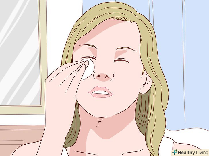 Використовуйте краплі для очей, щоб вгамувати почервоніння. Тепер, коли набряк спав, зменшіть почервоніння, щоб струп можна було приховати звичної тональної основою. Перевірте упаковку крапель, щоб переконатися, що вони призначені для усунення почервоніння очей. Ці краплі також подіють на запалену шкіру, так що видавіть 1 краплю на ватний тампон і прикладіть до рани. Через хвилину почервоніння зменшиться, і ви зможете приховати його косметикою. [9]