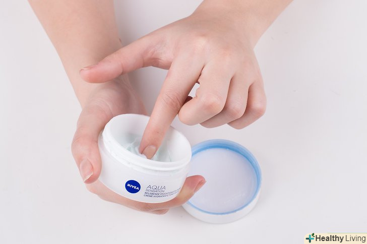 Підберіть зволожуючий крем, відповідний для вашої шкіри. щоденне зволоження шкіри дуже сильно впливає на те, як вона виглядає з віком. [4] і все-таки важливо підібрати такий крем, який підходить для вашої шкіри. [5]- Для жирної шкіри вибирайте крем на водній основі. Зверніть увагу на те, що вам потрібен крем, що не викликає вугровий висип. Зазвичай це буває зазначено на упаковці. Такі крему не забивають пори. Для сухої шкіри потрібен крем важче. Вам варто віддати перевагу крему на масляній основі. Якщо у вас комбінована шкіра, можливо, Вам слід зупинитися на чомусь між водною і масляною основою. Більшість зволожуючих кремів мають маркування, для якого типу шкіри вони призначені. Але з віком вашій шкірі необхідно більше вологи, тому для зрілої шкіри краще вибрати крем на масляній основі, незалежно від типу шкіри. [6]