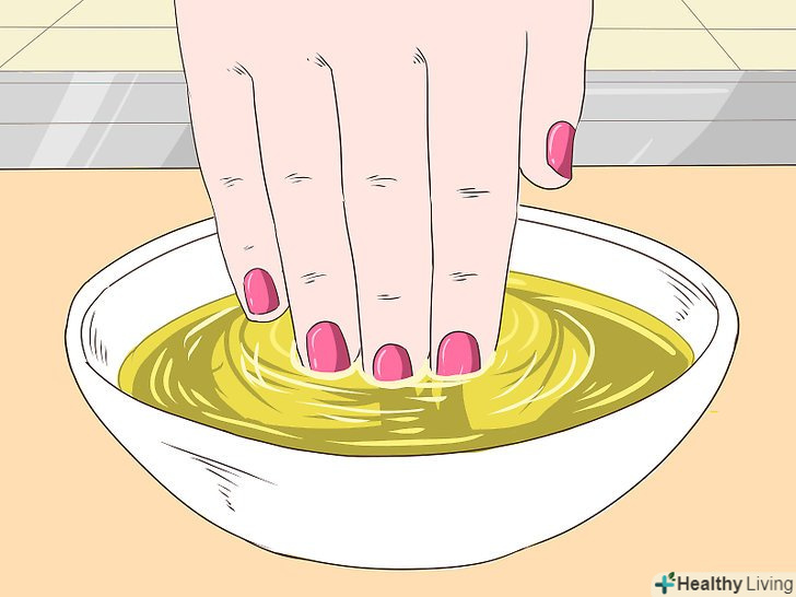 - Зробіть розчин з масла, солі і води в невеликій мисці. Опустіть в розчин кінчики пальців. Потім помийте руки і промокніть рушником. Робіть такі ванночки 10-20 хвилин раз на день протягом трьох тижнів. Це дозволить зміцнити нігті.