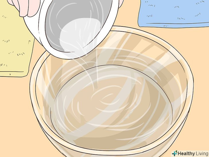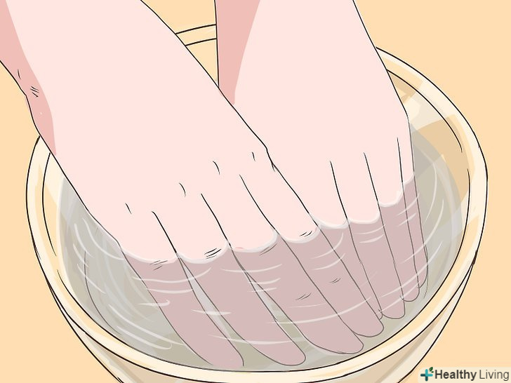 Опустіть в оцет одну руку на 4-5 хвилин. другою рукою тримайте миску. Потім повторіть з другою рукою.