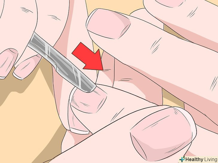 Акуратно відсуньте кутикули, якщо буде потрібно. підпиляєте нігті, якщо це необхідно.- Не зрізайте кутикули. Лікарі не рекомендують робити це з кількох причин. По-перше, видалення кутикули може привести до занесення інфекції, що сповільнить зростання нігтя. [2] по-друге, кутикули будуть відростати заново. Якщо ж просто відсунути їх, вони будуть здаватися менше.