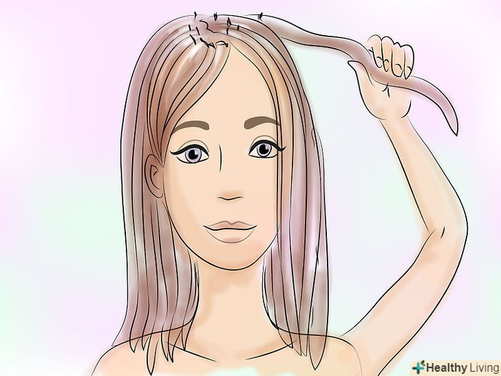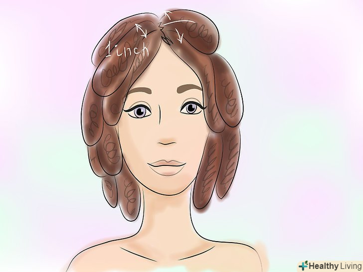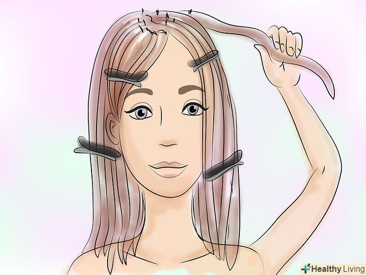 Починайте крутити і закріплювати одну пасмо за один раз. ви можете використовувати затиск для волосся або щось типу того, щоб не давати іншим пасмам заважати вам під час роботи. Почніть з верхньої частини голови, таким чином, коли ви завершили пасмо, закріпіть її, відкладіть в сторону і почніть наступну.
