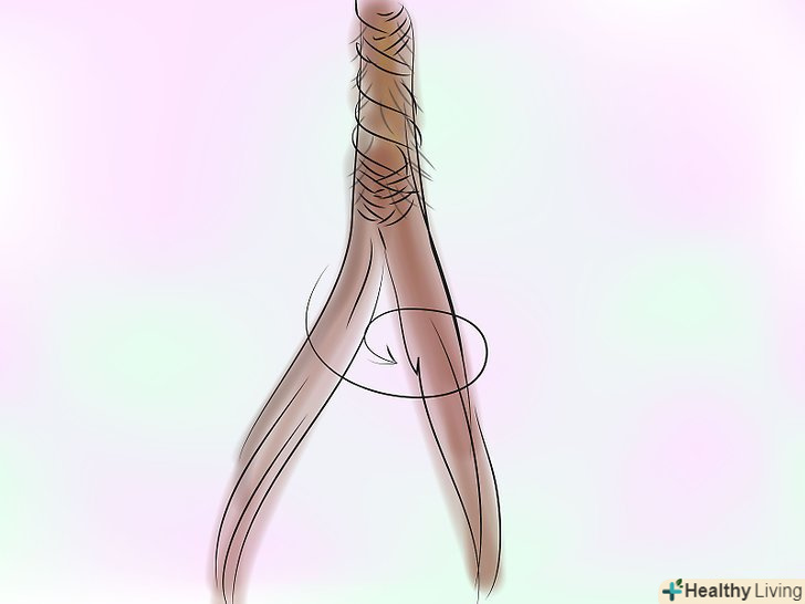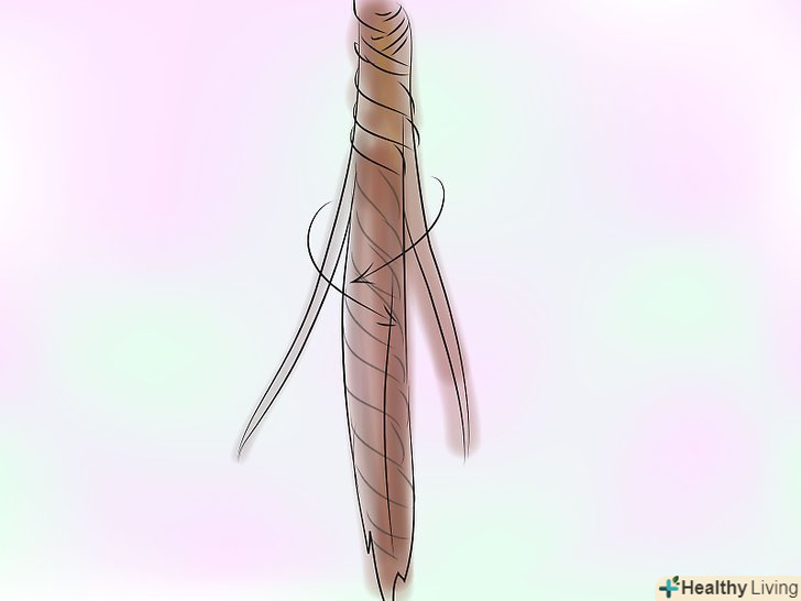 - Ви можете також обернути дреди/ пасма. Якщо ви обернете їх щільно або використовуєте конопляні волокна, щоб обернути повністю, локони не зможуть перекрутитися один з одним. Ви можете використовувати нитки для вишивання, представлені більш ніж сотнею квітів, і ви можете використовувати конопляні нитки також, не обертайте дреди хрест навхрест. Візьміть довгу нитку і складіть її навпіл. Вільно зв'яжіть її поруч з кореневою областю. Тепер оберніть кожну нитку в протилежному напрямку X-подібним візерунком зверху вниз. Якщо пасмо знаходиться в стороні, вона буде виглядати саме таким чином. Це дає пасма свободу для пересування.