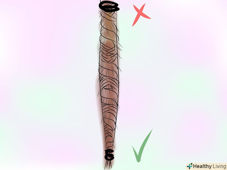 Коли ви закінчите всю довжину вашої пасма, можна тимчасово закріпити її чорною еластичною гумкою. ніколи не використовуйте гумку, так як вона витягує волосся і таким чином розчиняється у вашому волоссі, залишаючи позаду липку слиз.