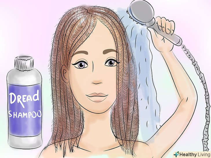 Помийте волосся через 2 або 3 дні і робіть це кожні 2 або 3 дні, використовуючи шампунь для дредів. знати ваш тип води важливо, тому що багато шампунь і мило для дредів не працюють належним чином в жорсткій воді, вони будуть повільно стікати по дреду. Якщо у вас м'яка вода, можна використовувати практично будь-який шампунь або мило для дредів, яке ви знайдете на ринку.