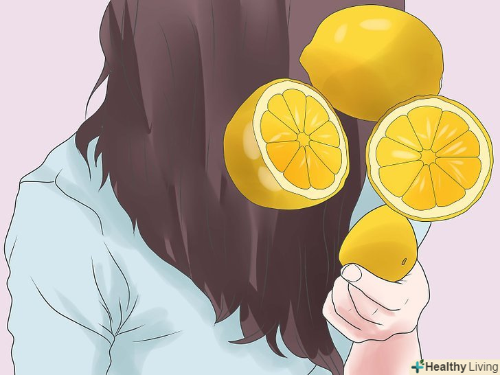 Використовуйте лимони. лимонний сік володіє природними отбеливающими властивостями, що може додати невеликі акценти вашому волоссю, без шкідливого впливу освітлювача. Це як сонце у вигляді фруктів.- Видавіть сік з декількох лимонів в невелику мисочку. Нанесіть сік на пасма волосся, від коренів до кінчиків, за допомогою кисті, пальців, або просто опускаючи пасма в миску. Посидьте на сонці 20-30 хвилин для активації освітлюючих властивостей соку.