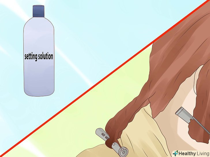 Нанесіть хімічний розчин для завивки і накрутіть локони на бігуді для перманентної завивки. слідуючи керівництву у вашій упаковці, просочіть ваше волосся розчином для укладання, розділіть їх на секції і накрутіть на бігуді для завивки. Закріпіть кожні бігуді і нанесіть більше хімічного розчину, щоб почати процес перманентної завивки волосся.