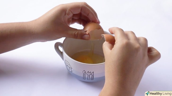 Використовуйте яйце. волосся практично повністю складаються з білка, так що будь-який засіб, який складається з цього елемента, позитивно вплине на волосся. Яйця багаті білком і зроблять ваше волосся сильними і густими. Просто добре збийте два яйця, а потім втирайте збиті яйця у вологе волосся. Залиште на 10-15 хвилин, а потім змийте і вимийте волосся шампунем як зазвичай.- Або ж ви можете змішати одне яйце з маслом для волосся, наприклад, з аргановим або кокосовим маслом, а потім використовувати це як маску для волосся. [5]