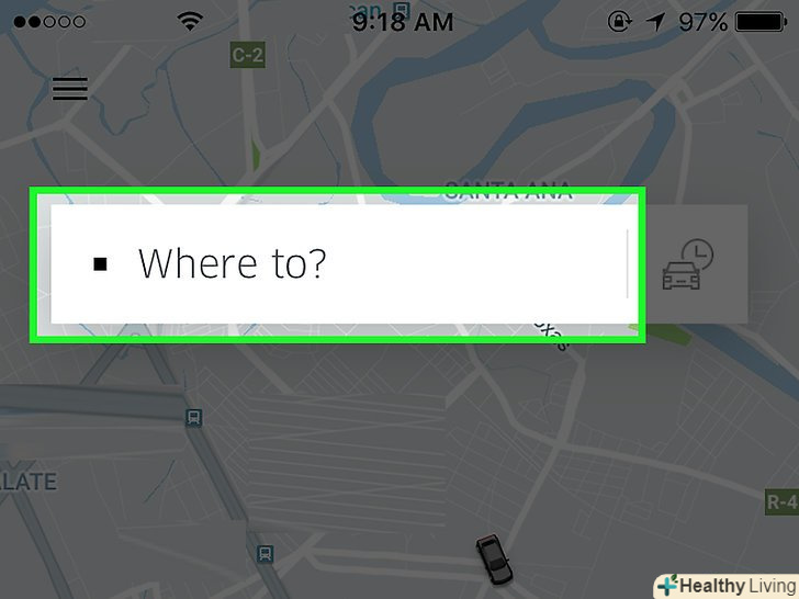 Натисніть " куди? " і введіть місце призначення. Виберіть вашу локацію в рядку пошуку.- Якщо ваші контакти синхронізовані з Додатком Uber, ви зможете відзначити адресу свого друга, як місце призначення. Вашому контакту буде відправлений запит на підтвердження. Отримавши позитивну відповідь, водій доставить вас прямо до нього.