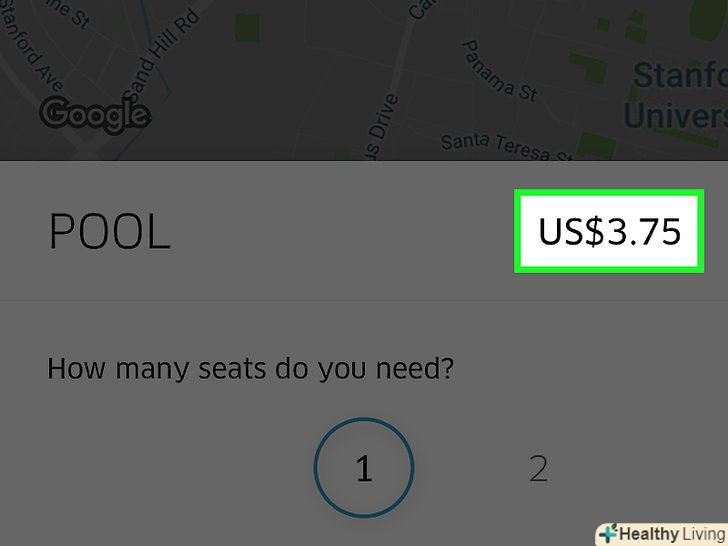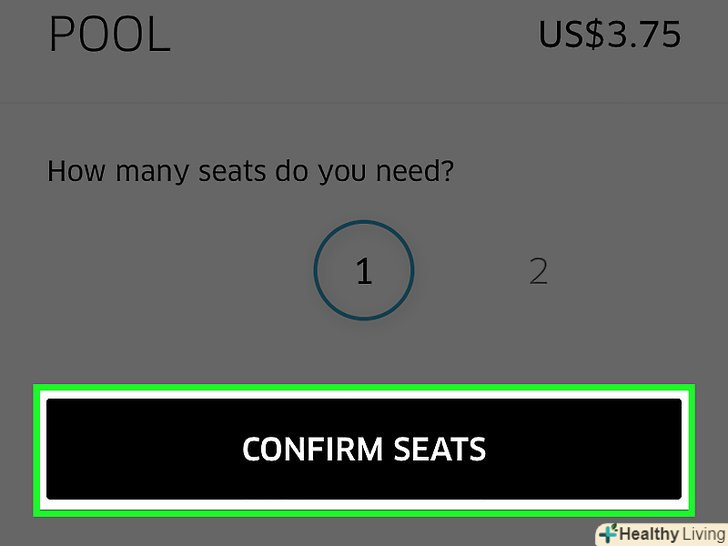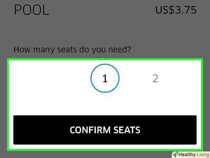 Вкажіть кількість необхідних місць (UberPool).якщо ви вибрали версію UberPool, ви можете вказати одне або два пасажирських місця. Якщо у вашій компанії більше 2 осіб, слід замовити UberX.