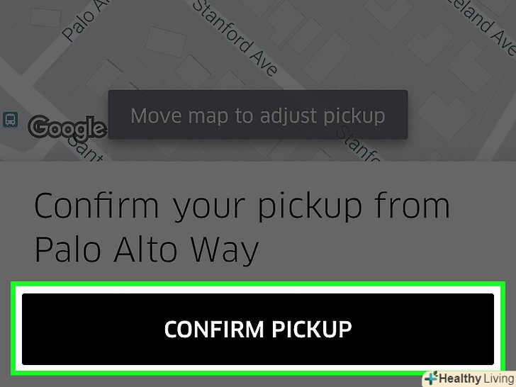 Підтвердіть локацію.додаток Uber використовує дані геолокації телефону для визначення місця розташування. Ви можете вказати точку на карті, куди б ви хотіли, щоб під'їхав водій.- Натисніть «Підтвердити місце розташування» і розмістіть замовлення.