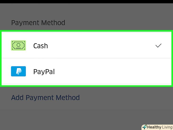Оплатіть поїздку.всі платежі обробляються автоматично сервісом Uber і залежать від вашого способу оплати, зазначеного при розміщенні замовлення. Ви можетевикористовувати кредитну або дебетову картку , обліковий запис PayPal, Android або Apple Pay або використовувати інші методи оплати, доступні у вашій країні.- Чайові для водіїв Uber не обов'язкові, але вітаються. Зверніть увагу, що у всіх сервісах Uber в кінцеву вартість поїздки не входить відсоток чайових за винятком Uber TAXI.[2]