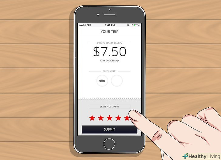 Оцініть поїздку.вам буде запропоновано оцінити поїздку після її завершення. Майте на увазі, що оцінка 4 зірки і нижче знизить рейтинг водія, і в наступній поїздці буде доступна менша кількість водіїв. Uber оцінює лише 5 зірковий рейтинг, як позитивний.