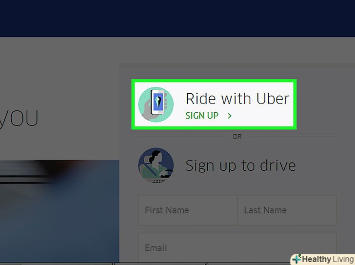 Перейдіть на офіційний сайт Uber.Uber-це міжнародна компанія, створена в Америці, що дозволяє зарезервувати особистого водія в будь-якому з міст, в яких працює додаток. Відкрийте сторінку Uber в браузері uber.com.- Ви також можете зареєструватися через додаток Uber на телефоні.