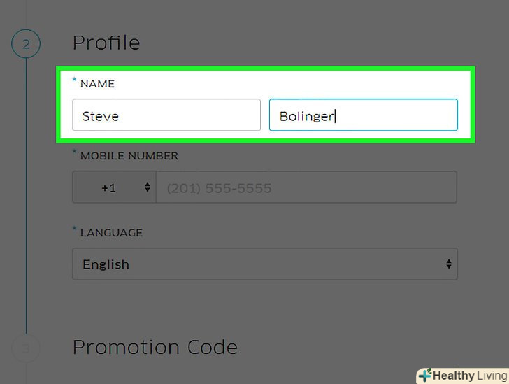 Заповніть поля Ім'я та прізвище.ім'я буде надано водіям для того, щоб, прибувши на місце призначення, вони могли переконатися, що везуть правильного пасажира. Прізвище не розголошується.
