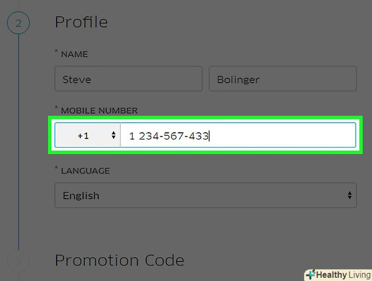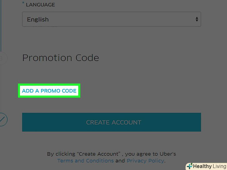 Додайте промо код (якщо такий є). ви можете ввести промо код одного, який вже використовує цей додаток, тоді ви обидва отримаєте знижку 300 рублів (публікація особистих промо кодів заборонена, так як суперечить політиці конфіденційності компанії, і ваш кредитний рахунок Uber буде анульований). Якщо ви не отримали код від одного, рекомендуємо відвідати офіційний сайт Uber, де ви зможете знайти промо коди.
