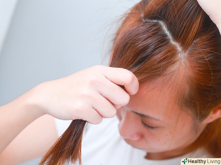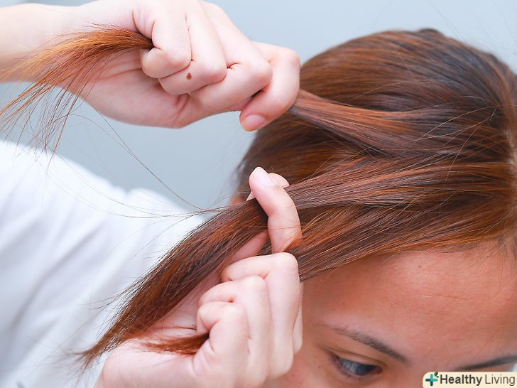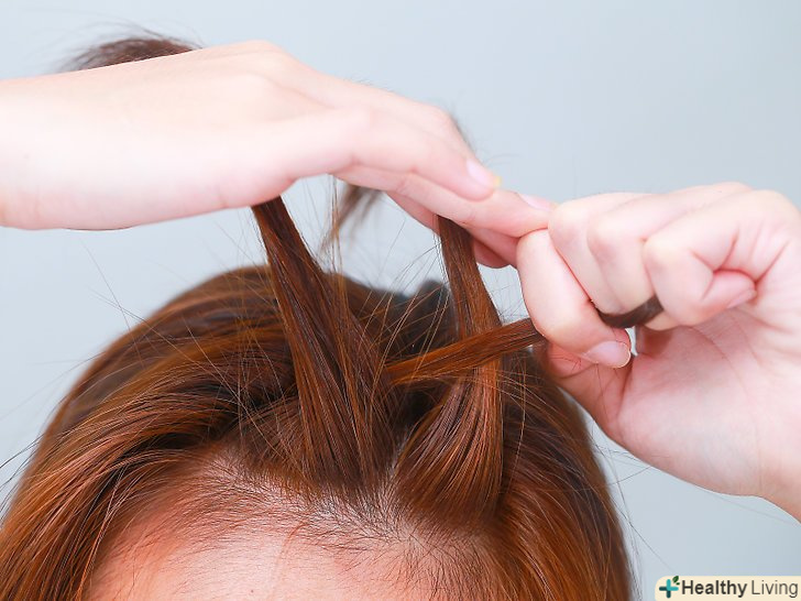 Розділіть чубок на три пасма. всі пасма повинні бути однакові по товщині і довжині.- Для цього можна просто поділити волосся пальцями. Насправді, пальцями розділити волосся набагато простіше, ніж гребінцем.