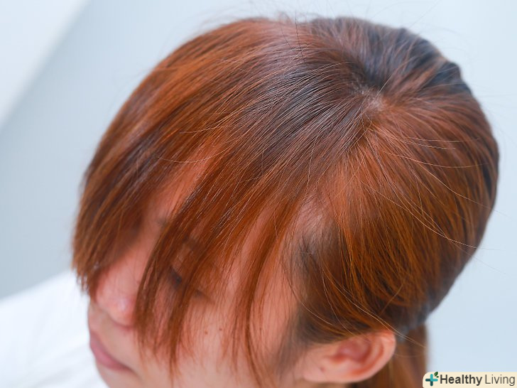- Обхопіть волосся чубчика на відстані 4-5 см від чола, коли відокремте її. Зачесавши чубок вперед, переконайтеся, що лінія виділення рівна. [1]