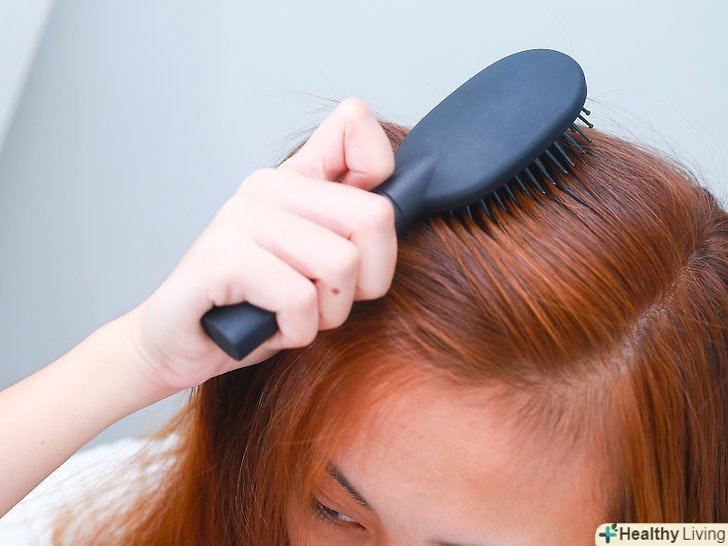Зачешіть чубок вперед. [4] використовуйте той же гребінь або плоску гребінець, щоб зачесати чубок вперед так, щоб вона закрила собою лоб і очі.- Ви можете заколоти інші волосся, щоб вони не заважали, але уникайте зав'язувати їх назовсім, так як звідти можуть знадобитися додаткові пасма для коси при плетінні.
