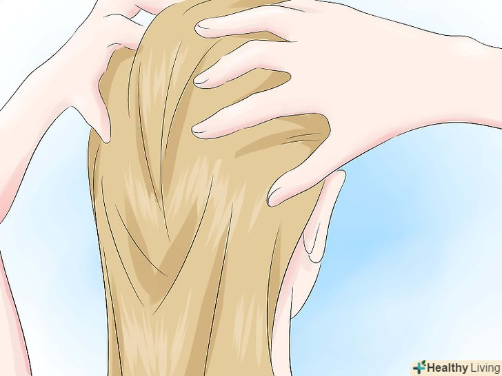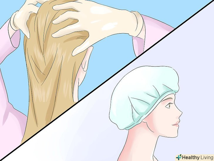 Втирайте хну в волосся масажуючими рухами. ви можете покрити все волосся або тільки ті пасма, які хочете освітлити. Накрийте волосся шапочкою для душу, щоб хна не висохла занадто швидко.